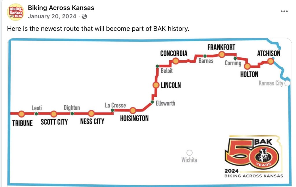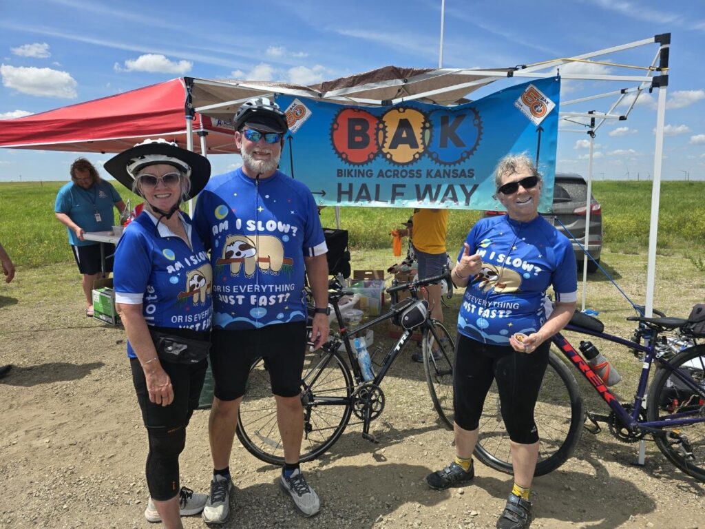 Making his way cross Kansas cheering everyone on as they pass us by